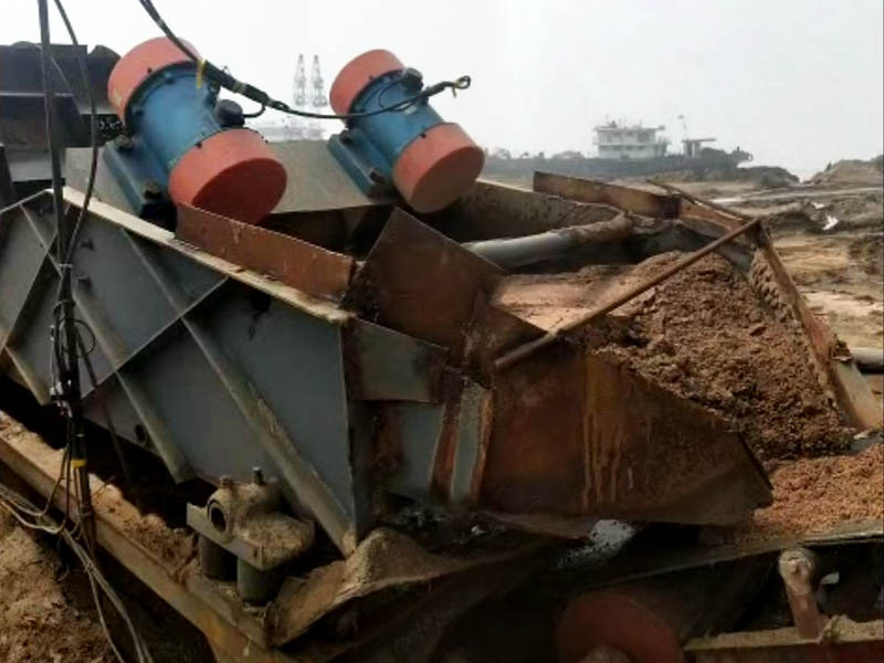振動(dòng)電機(jī)水平方向分力作用下,篩體會(huì)給物料一個(gè)水平方向的分力,推動(dòng)已脫水的物料到前端篩口排出。